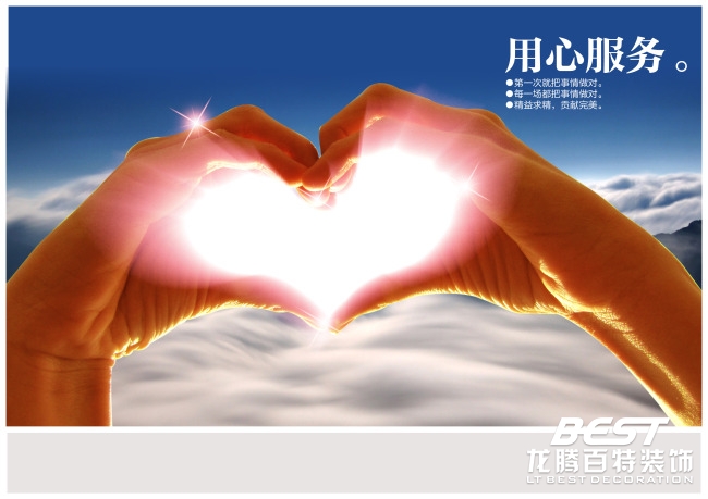 龍騰百特裝飾為感謝各位客戶朋友一直以來對(duì)于我們的信任和支持,為提升龍騰百特裝飾工地施工的服務(wù)性,為能達(dá)到讓選擇龍騰百特裝飾的每位業(yè)主在裝修過程當(dāng)中體驗(yàn)到“放心,省心,開心”的三心服務(wù)理念。龍騰百特裝飾全體員工借此次機(jī)會(huì)對(duì)各位客戶表以最誠摯的感謝。